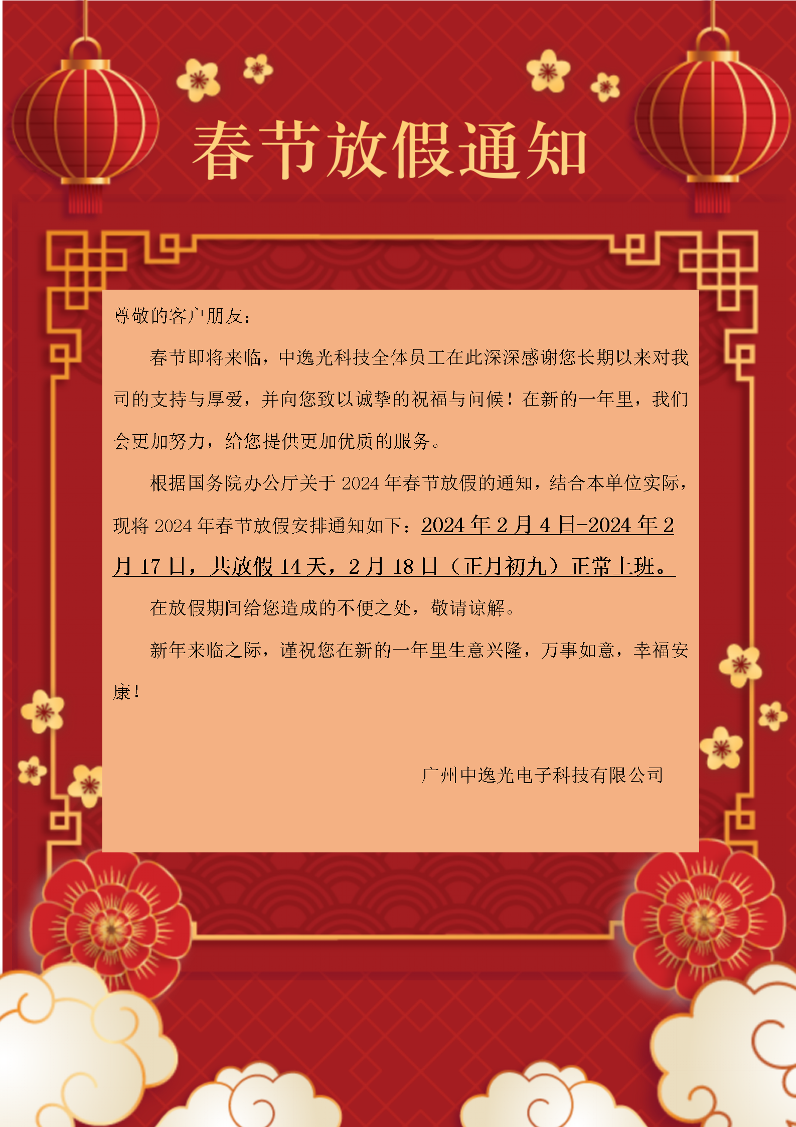 下(xià)一(yī)篇:中逸光(guāng)科(kē)技(jì)2024年(nián™>)元旦放(fàng)假通(tōng)知(zhī)