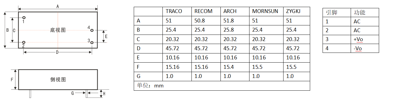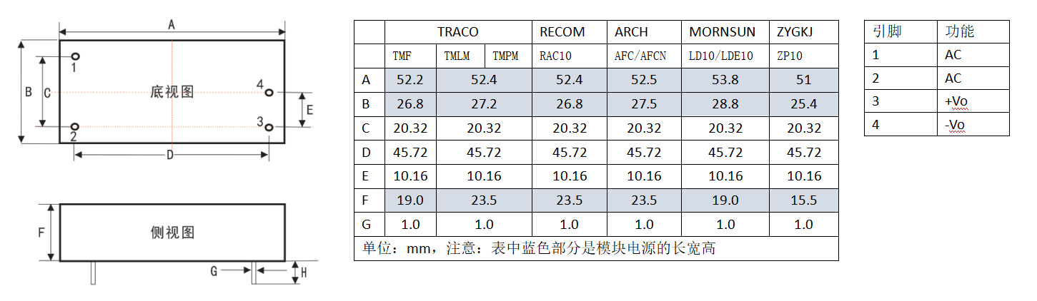 10W功率AC/DC電(diàn)源模塊對(duì)比替代表