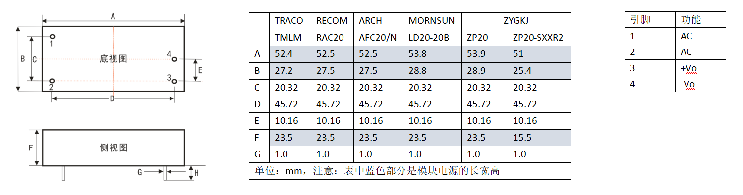 20W功率AC/DC模塊電(diàn)源對(÷→duì)比替代表