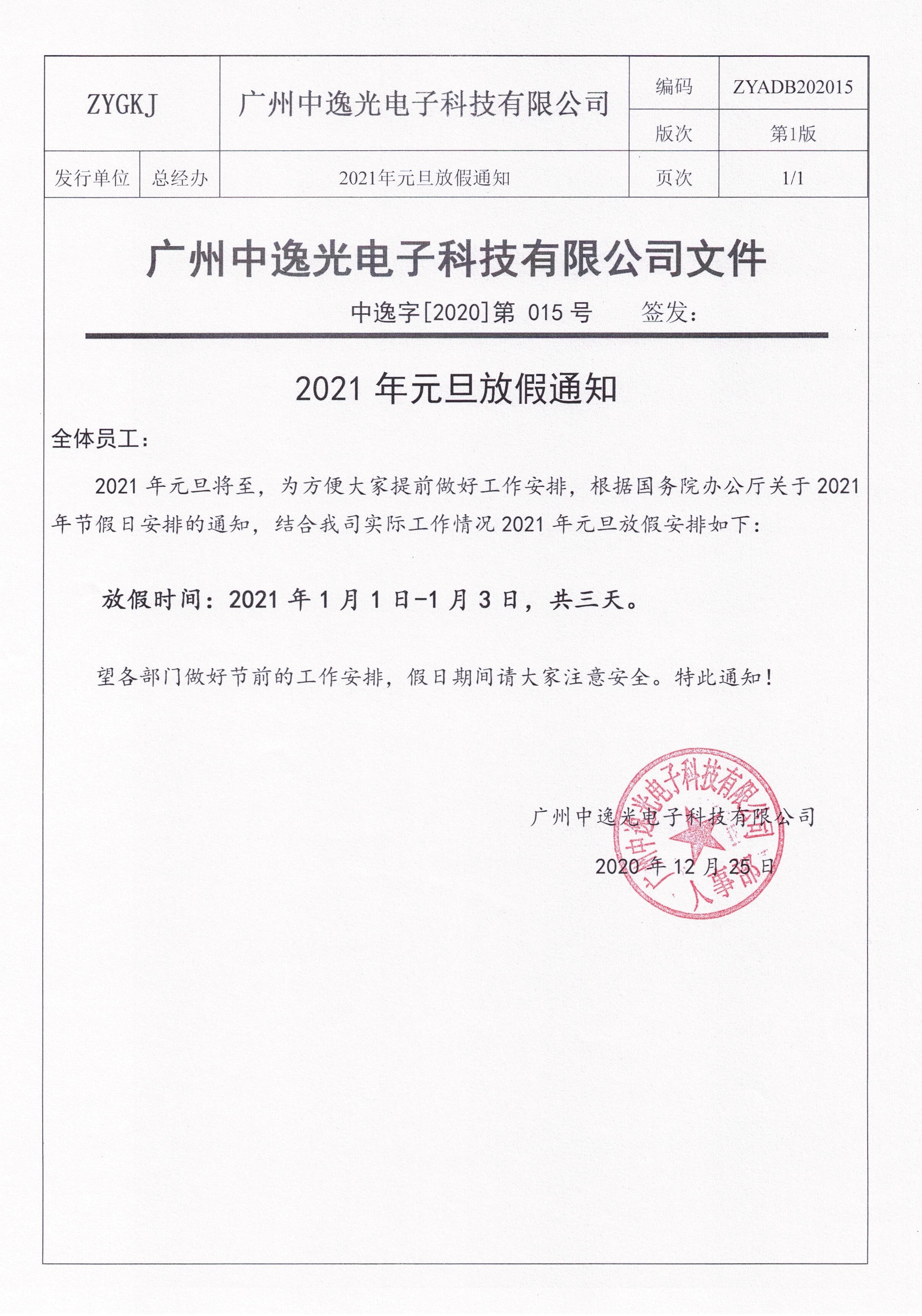 廣州中逸光(guāng)2021年(nián)元旦放(fàng)假通(tōng)知(↕©↕zhī)