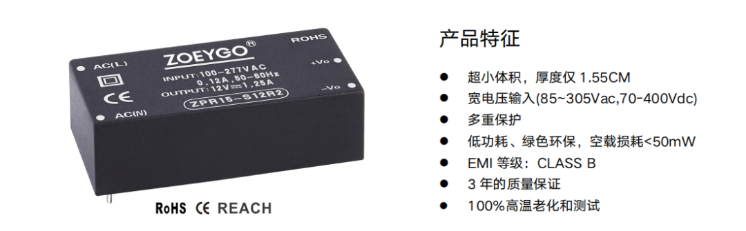 ZOEYGO 2022年(nián)第1款新&₽品發布--ZPR15 R2系列|15W ACDC模塊薄型化(huà)、高(gāo)功率密度