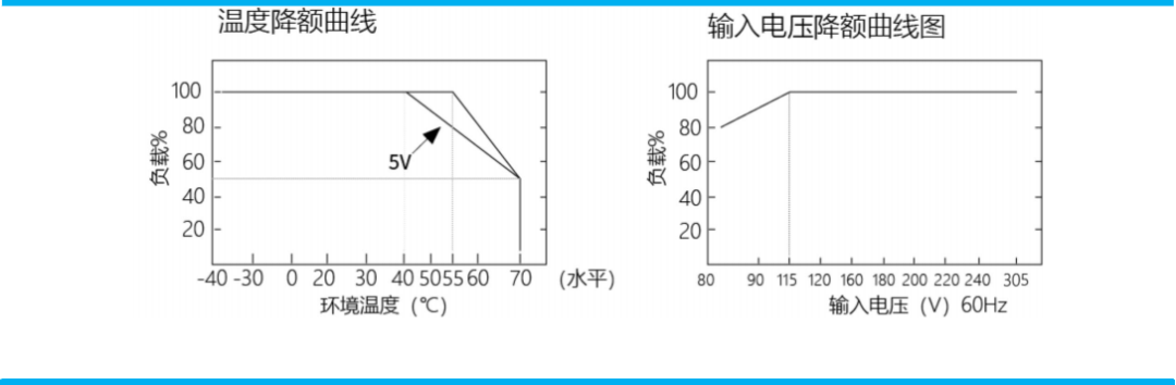 該系列溫度範圍為(wèi):-40 ~ +70 ℃ (詳見(jiàn)降額曲線圖)