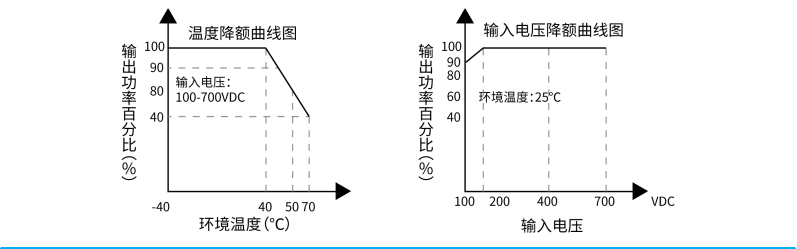 該系列電(diàn)壓輸入範圍為(wèi):100~700VDC (詳見(jiàn)降額曲♣✔線圖);