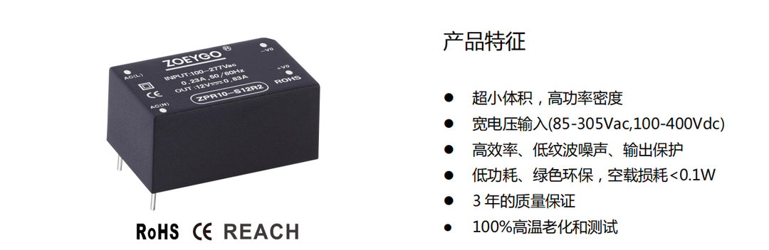 ZOEYGO 2022年(nián)第4款新品發布—ZPR10-SXXR2系φπ列|10W ACDC模塊電(diàn)源、高(gāo)功率密度